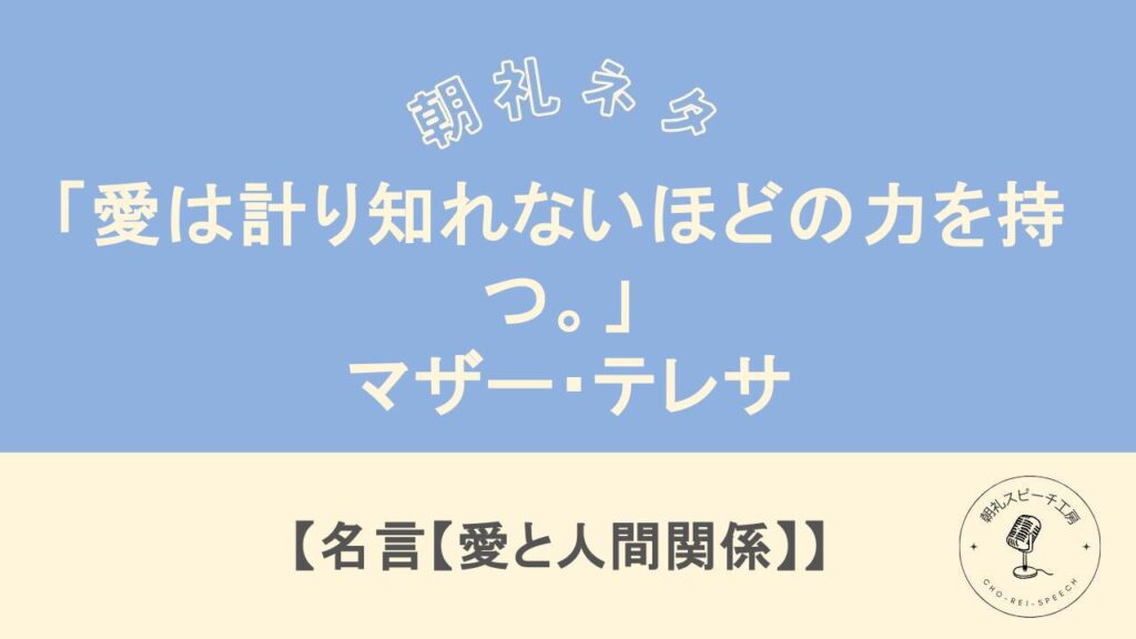 朝礼ネタ「「愛は計り知れないほどの力を持つ。」 – マザー・テレサ」