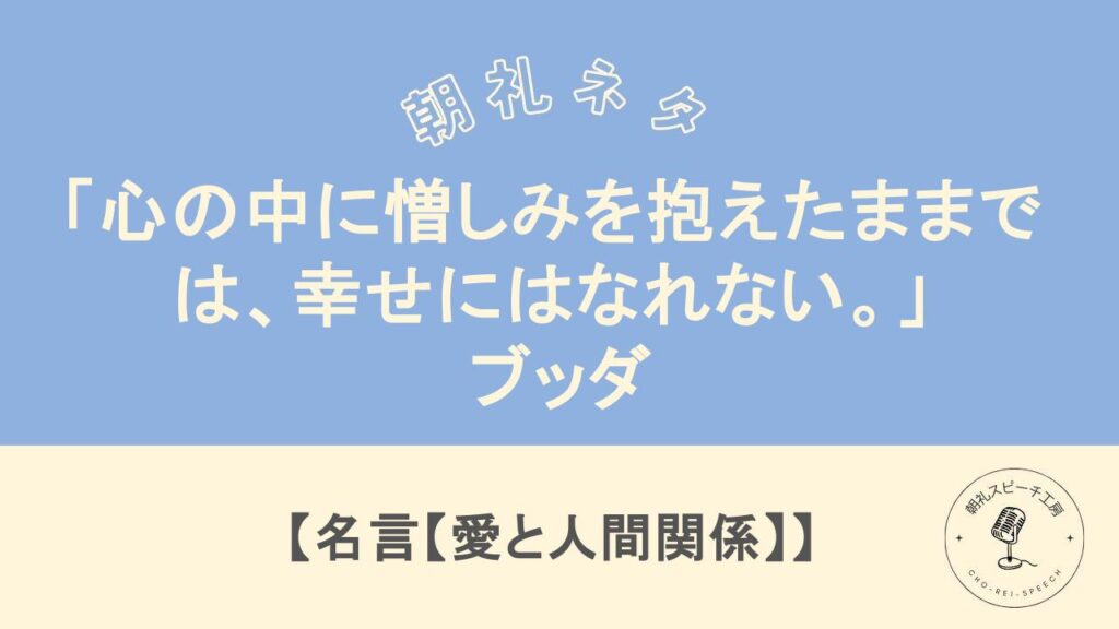 朝礼ネタ「「心の中に憎しみを抱えたままでは、幸せにはなれない。」 – ブッダ」
