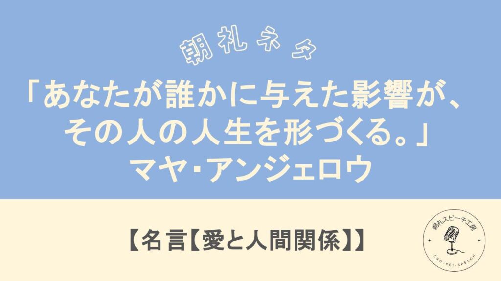 朝礼ネタ「「あなたが誰かに与えた影響が、その人の人生を形づくる。」 – マヤ・アンジェロウ」