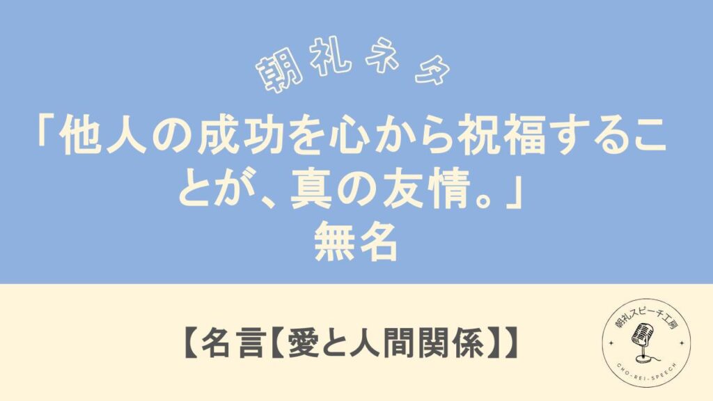 朝礼ネタ「「他人の成功を心から祝福することが、真の友情。」 – 無名」