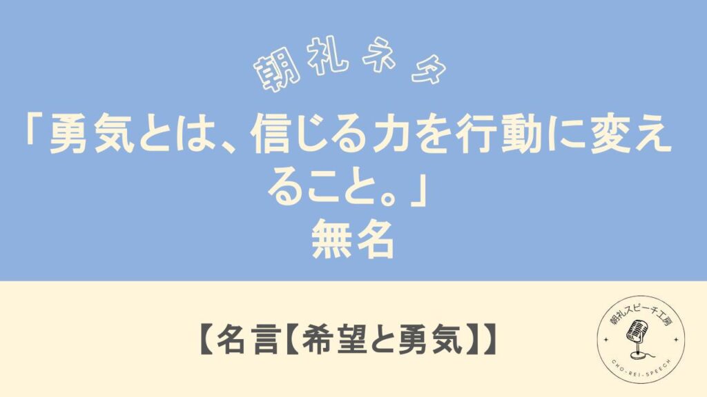 朝礼ネタ「「勇気とは、信じる力を行動に変えること。」 – 無名」