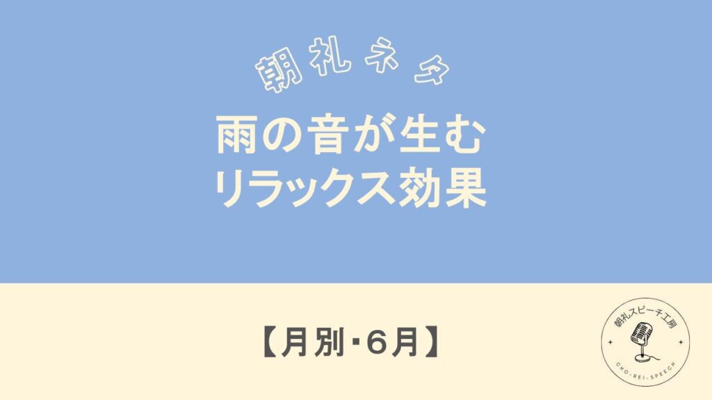 雨の音が生むリラックス効果 おはようございます。 雨の日が続くと少し憂鬱な気分になることもありますが、雨の音には私たちをリラックスさせる不思議な効果があることをご存じでしょうか。今日は、雨音の持つ力について3つのポイントをお話しします。 1. ... -