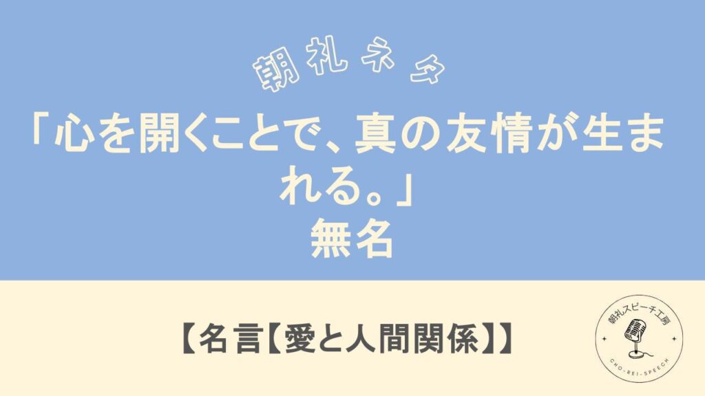 朝礼ネタ「「心を開くことで、真の友情が生まれる。」 – 無名」