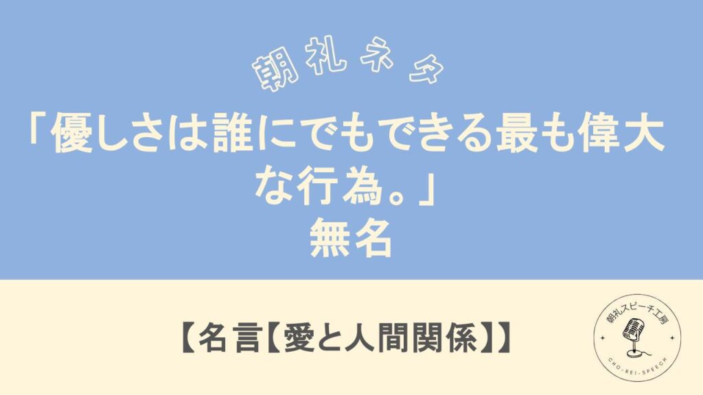 朝礼ネタ「「優しさは誰にでもできる最も偉大な行為。」 – 無名」