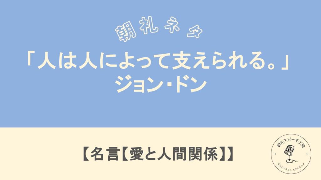 朝礼ネタ「「人は人によって支えられる。」 – ジョン・ドン」
