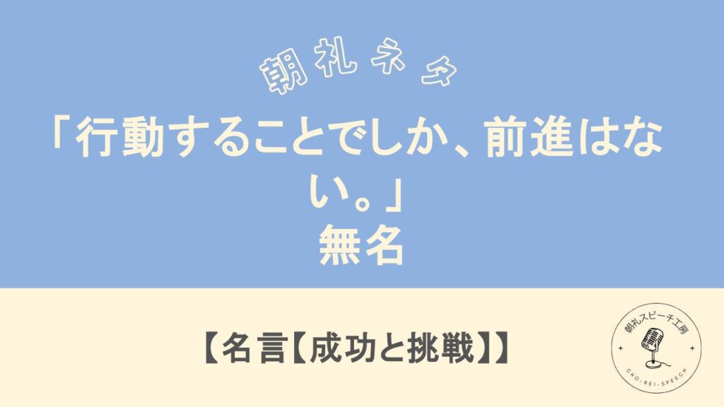 朝礼ネタ「「行動することでしか、前進はない。」 – 無名」