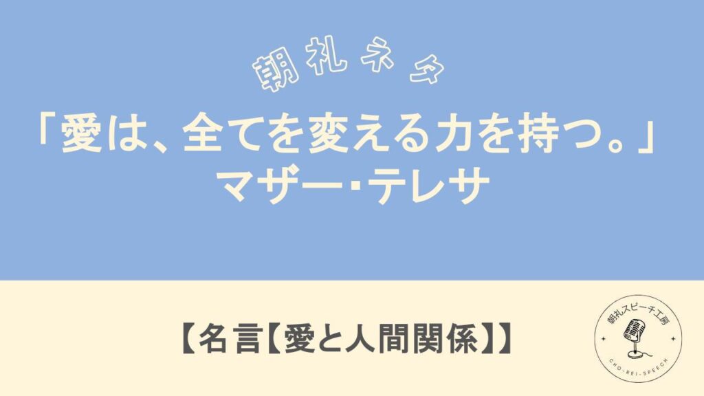 朝礼ネタ「「愛は、全てを変える力を持つ。」 – マザー・テレサ」