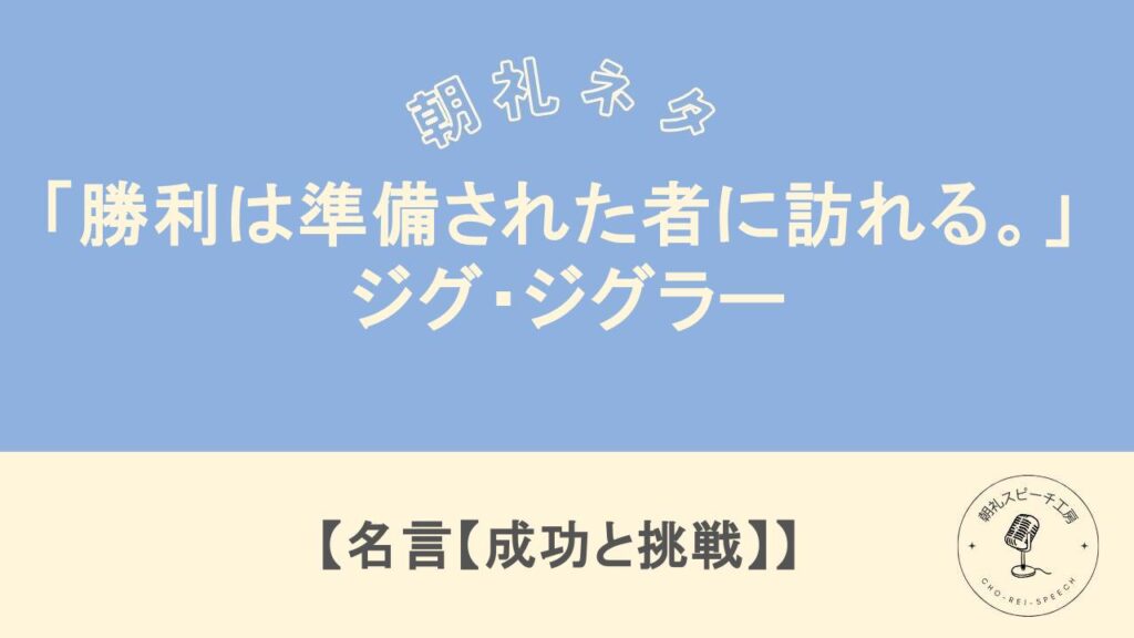 朝礼ネタ「「勝利は準備された者に訪れる。」 – ジグ・ジグラー」