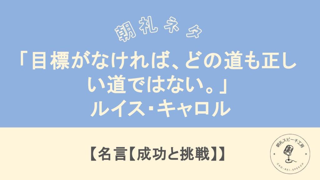 朝礼ネタ「「目標がなければ、どの道も正しい道ではない。」 – ルイス・キャロル」