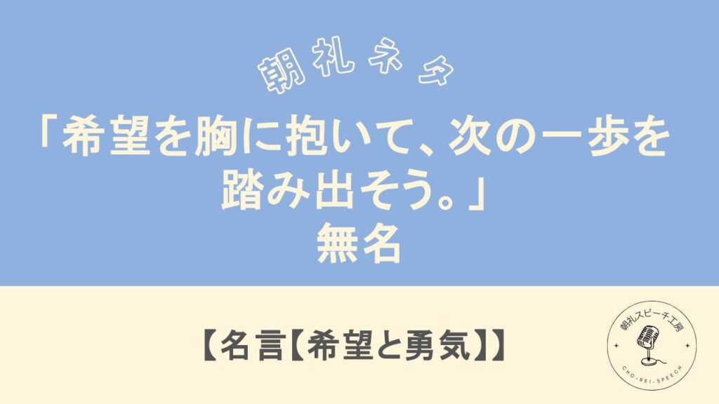 朝礼ネタ「「希望を胸に抱いて、次の一歩を踏み出そう。」 – 無名」