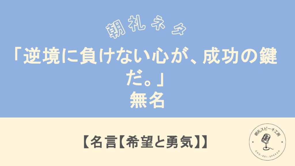 朝礼ネタ「「逆境に負けない心が、成功の鍵だ。」 – 無名」