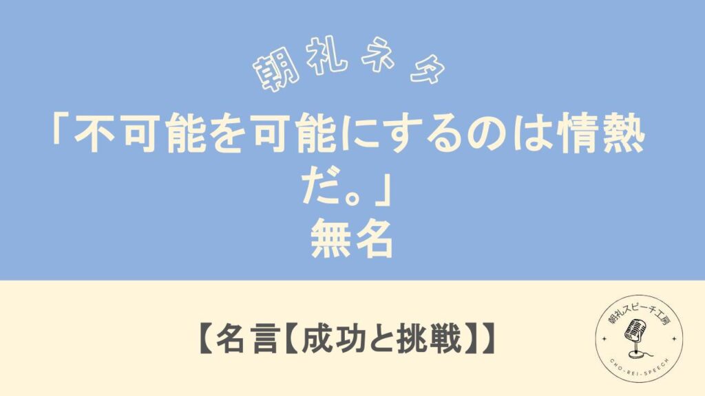 朝礼ネタ「「不可能を可能にするのは情熱だ。」 – 無名」