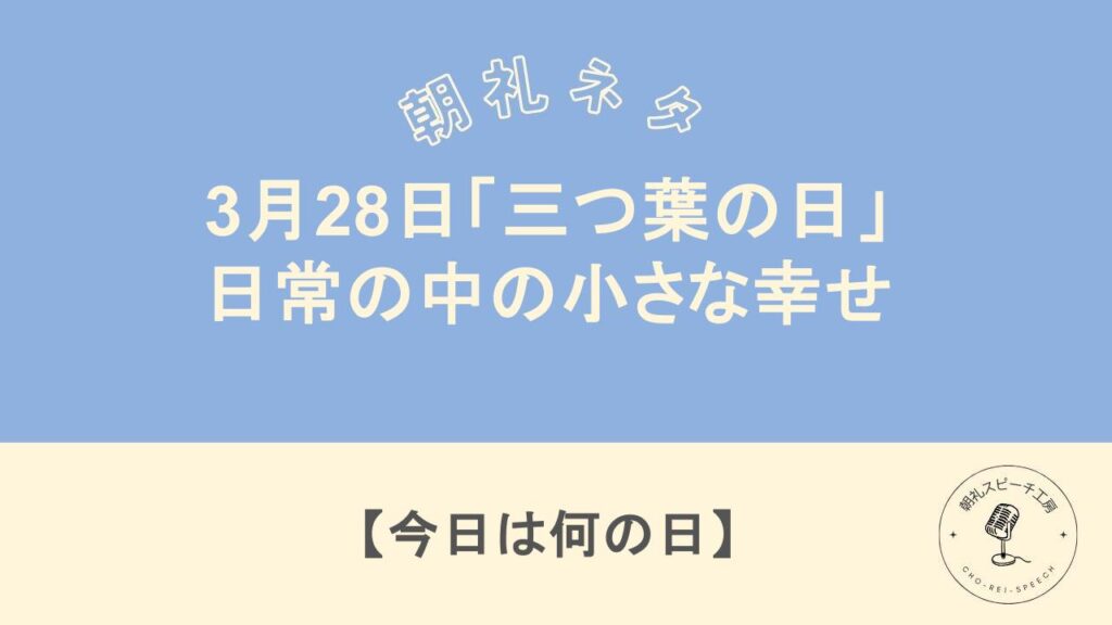 朝礼ネタ「3月28日「三つ葉の日」:日常の中の小さな幸せ」
