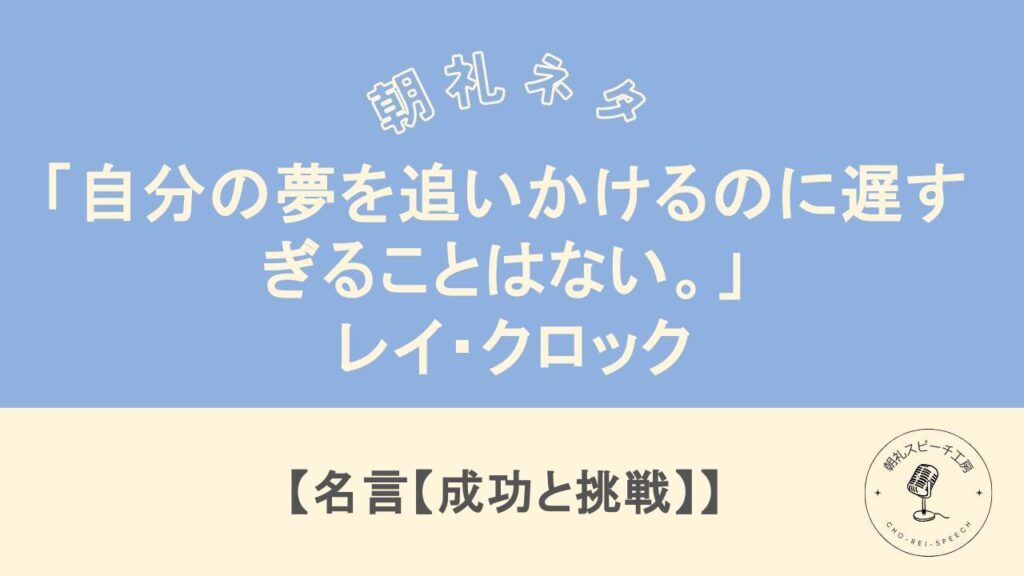 朝礼ネタ「「自分の夢を追いかけるのに遅すぎることはない。」 – レイ・クロック」