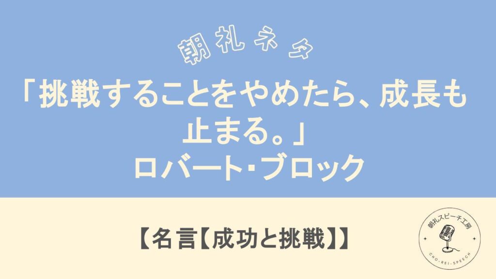 朝礼ネタ「「挑戦することをやめたら、成長も止まる。」 – ロバート・ブロック」