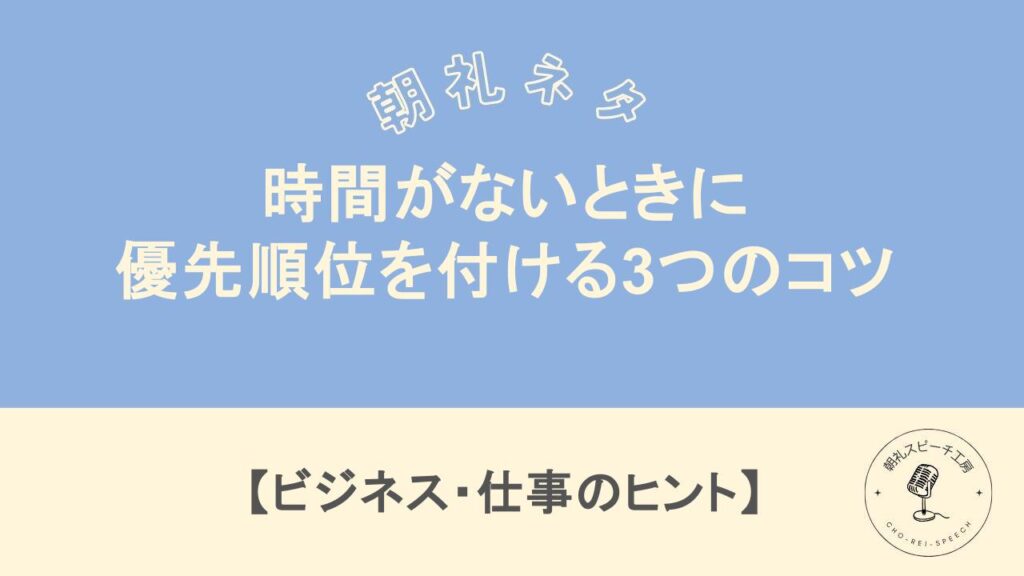 朝礼ネタ「時間がないときに優先順位を付ける3つのコツ」