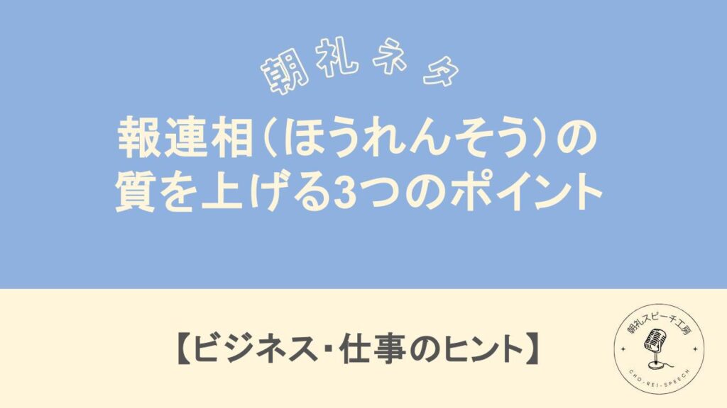 朝礼ネタ「報連相(ほうれんそう)の質を上げる3つのポイント」