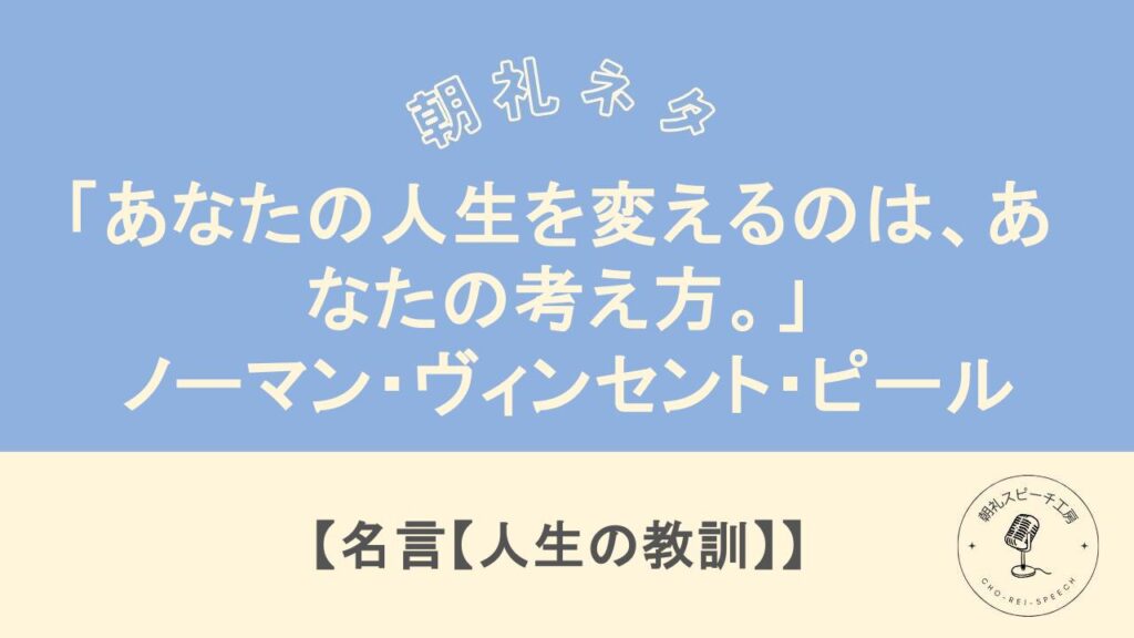 朝礼ネタ「「あなたの人生を変えるのは、あなたの考え方。」 – ノーマン・ヴィンセント・ピール」