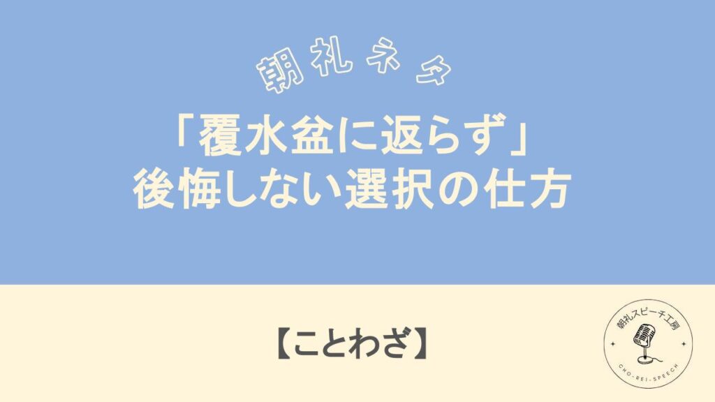 朝礼ネタ「「覆水盆に返らず」—後悔しない選択の仕方」