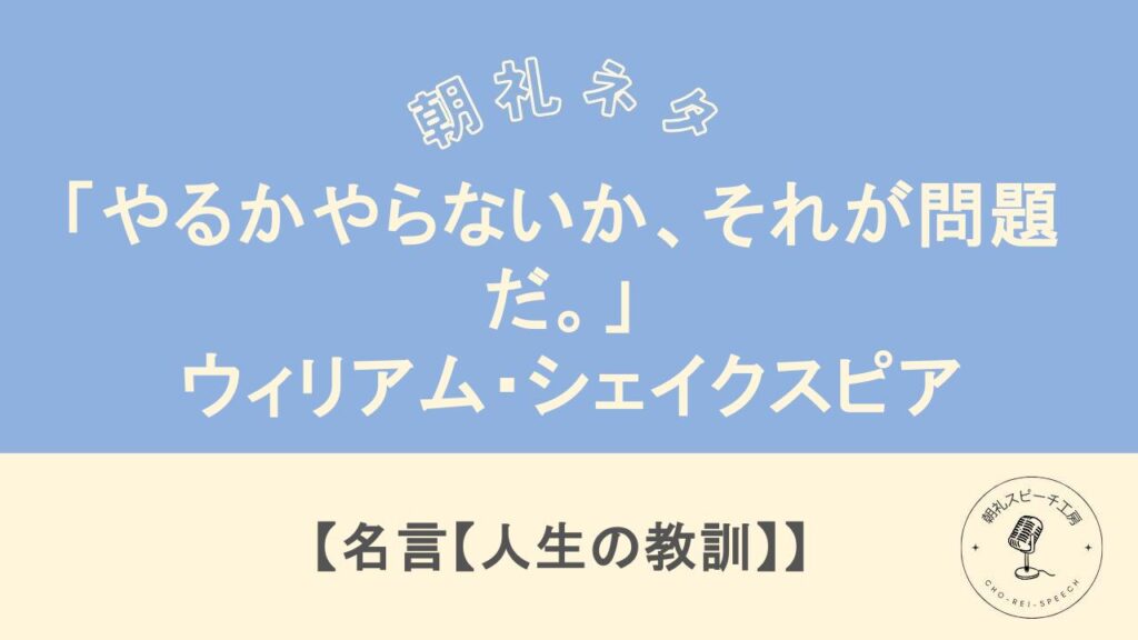 朝礼ネタ「「やるかやらないか、それが問題だ。」 – ウィリアム・シェイクスピア」