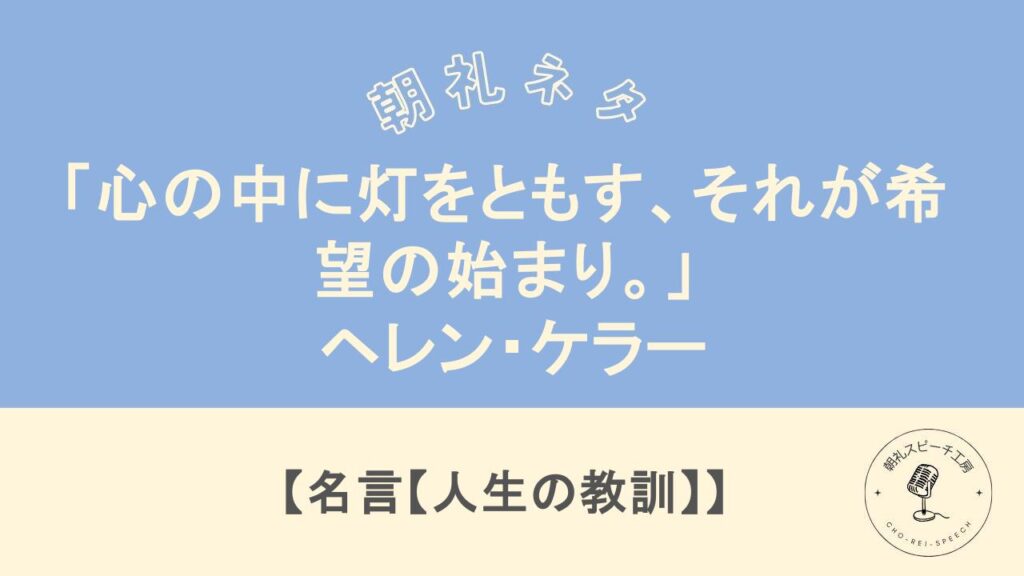 朝礼ネタ「「心の中に灯をともす、それが希望の始まり。」 – ヘレン・ケラー」