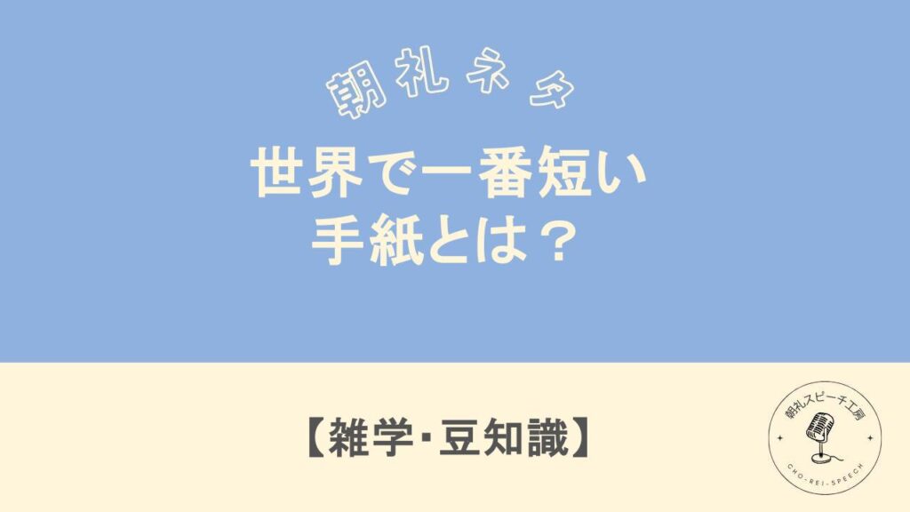世界で一番短い手紙とは? おはようございます。 手紙といえば、相手への思いを込めた文章を想像しますが、実は世界で「一番短い手紙」として知られるものが存在します。それは驚くほど短い中に、大きな意味が込められているのです。今日はそのエピソード... -