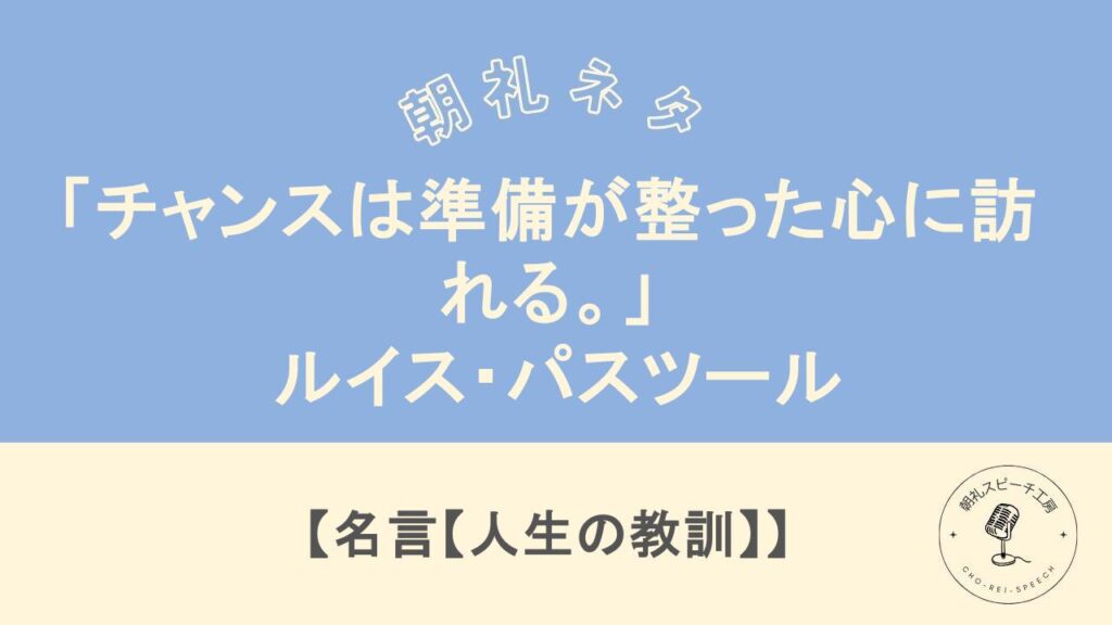 朝礼ネタ「「チャンスは準備が整った心に訪れる。」 – ルイス・パスツール」