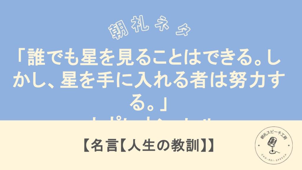 朝礼ネタ「「誰でも星を見ることはできる。しかし、星を手に入れる者は努力する。」 – ナポレオン・ヒル」