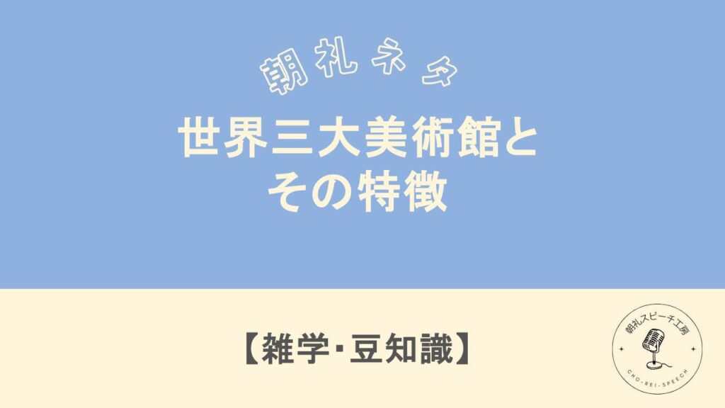 世界三大美術館とその特徴 おはようございます。 芸術の秋とも言われるこの季節、少し文化的な話題をお届けします。今日は、世界三大美術館と呼ばれる「ルーヴル美術館」「大英博物館」「メトロポリタン美術館」の特徴についてお話しします。 1. ルーヴル... -