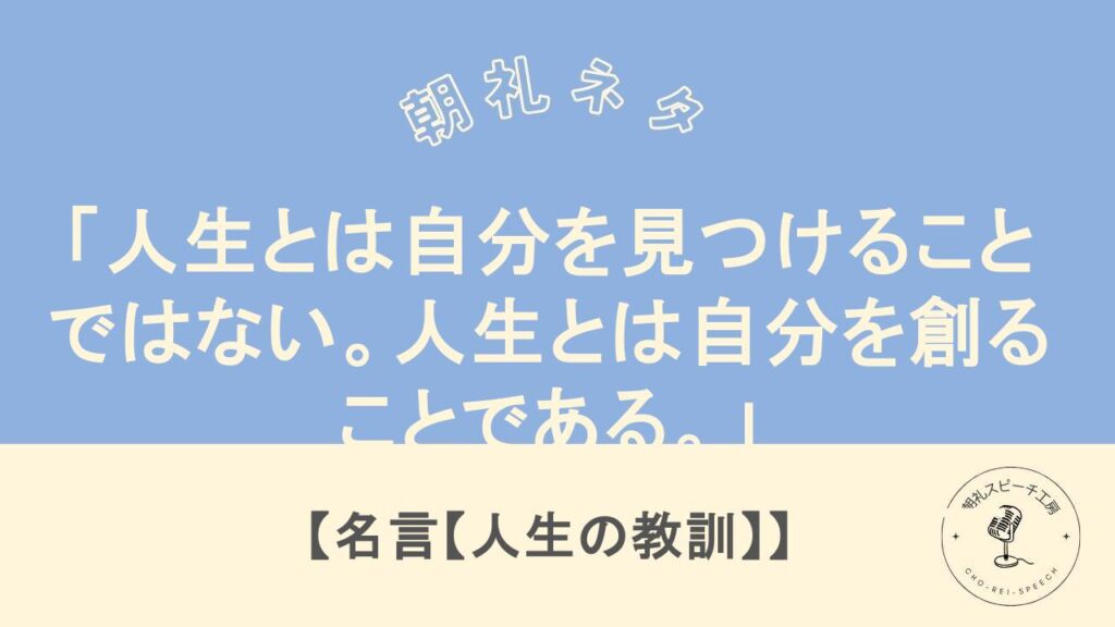 朝礼ネタ「「人生とは自分を見つけることではない。人生とは自分を創ることである。」 – ジョージ・バーナード・ショー」